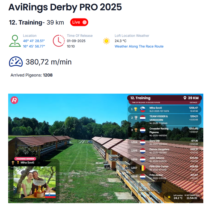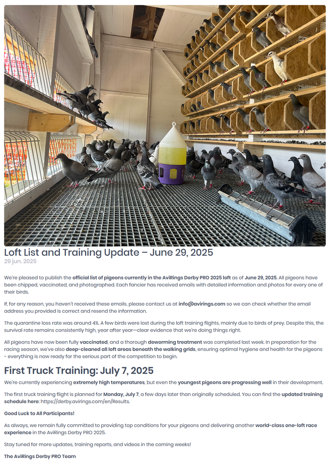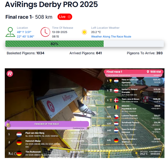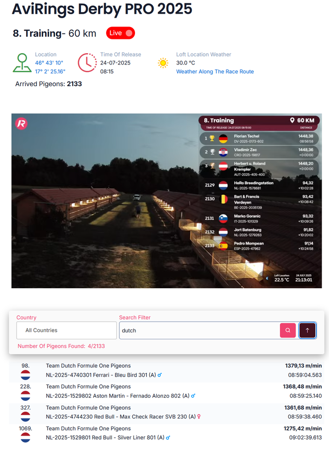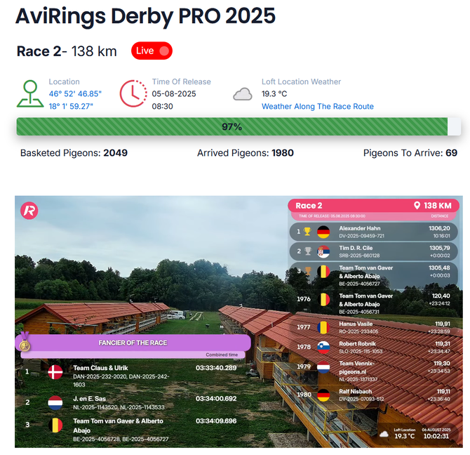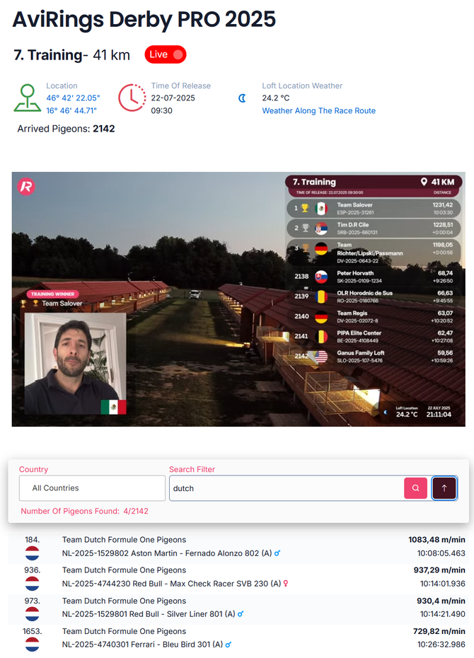 Duiven zijn geactiveerd in het AviRings PRO 2025 Systeem: