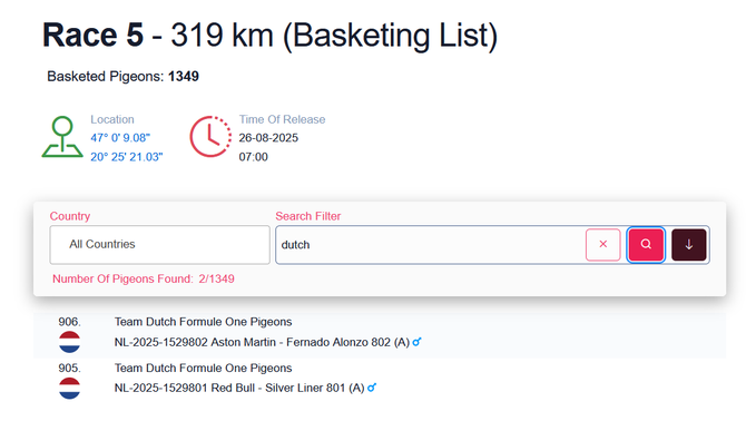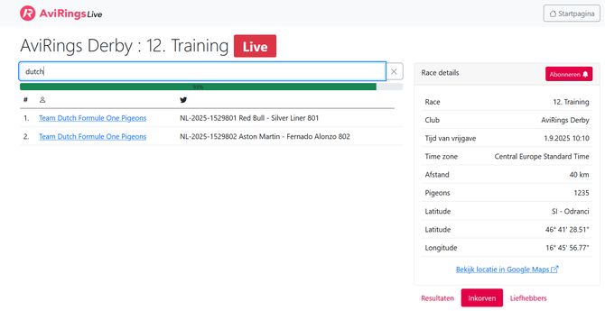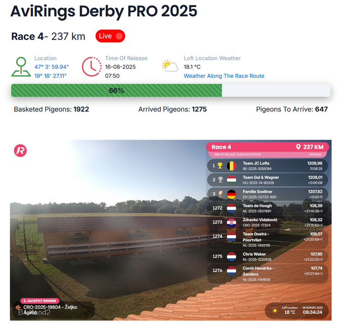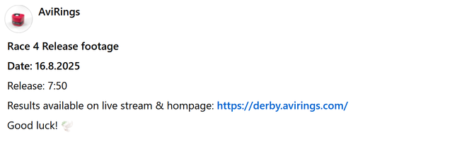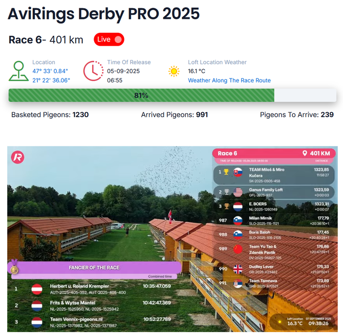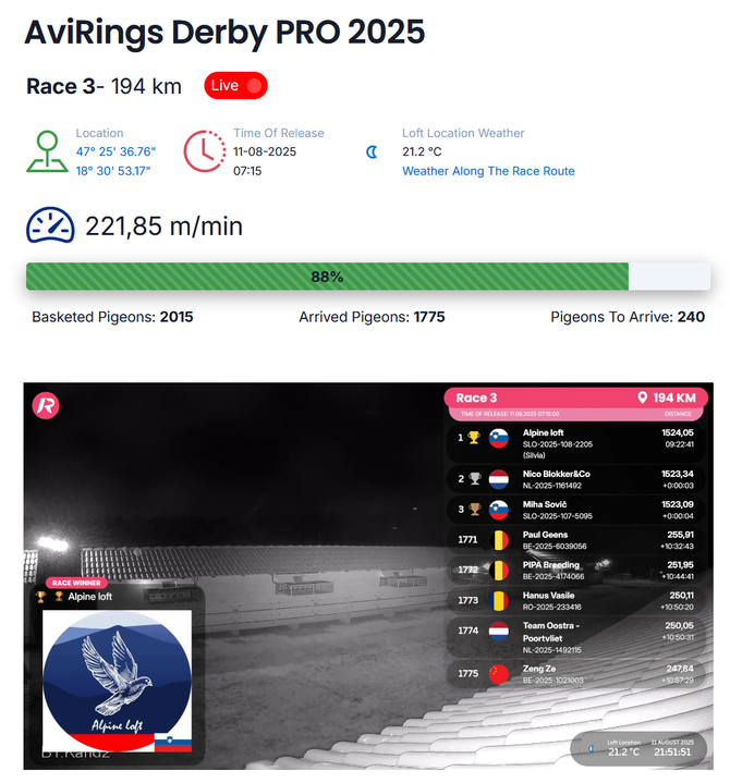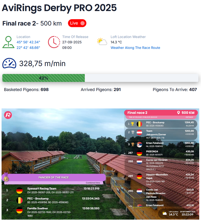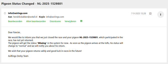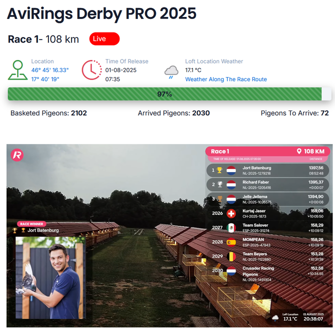Duiven zijn geactiveerd in het AviRings PRO 2025 Systeem: