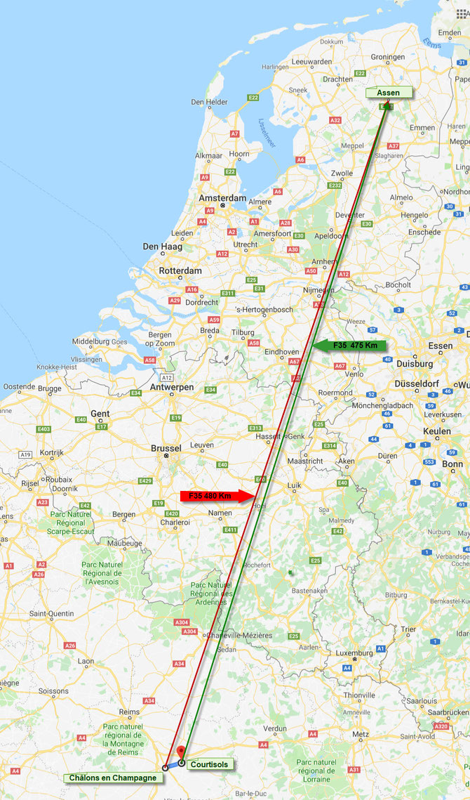 losplaats werd het nabij gelegen Courtisols op 470 km gemiddeld. Ook hier kon na het oplossen van de grondmist de duiven los om 8.30 uur voor een pittige vlucht met de thuiskomst in temperaturen