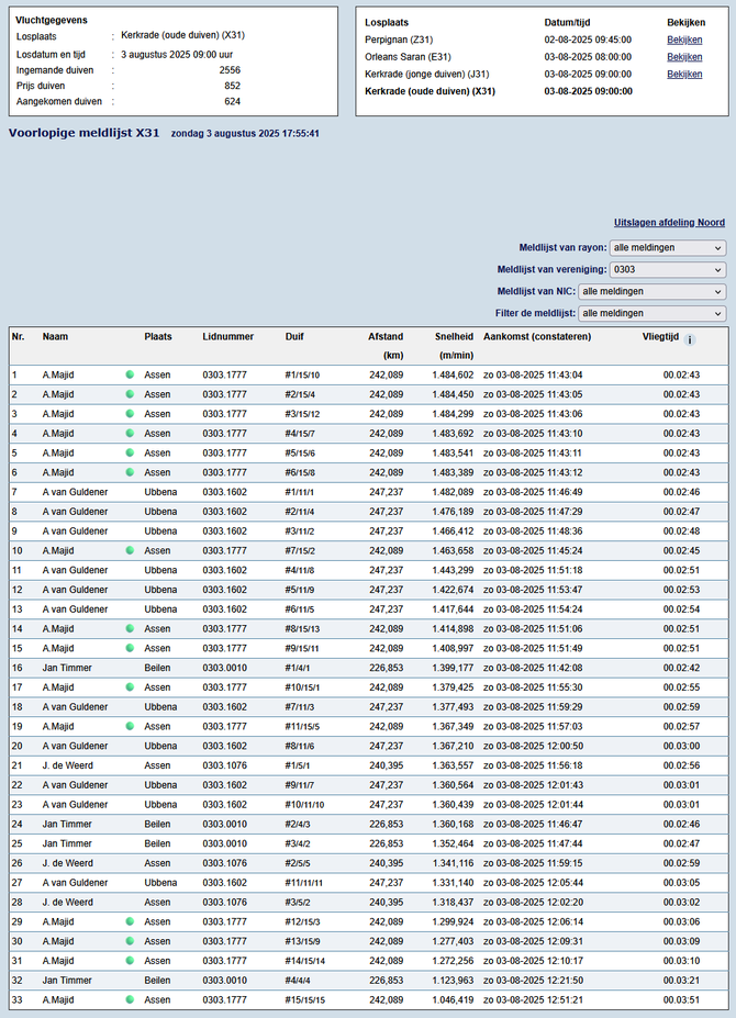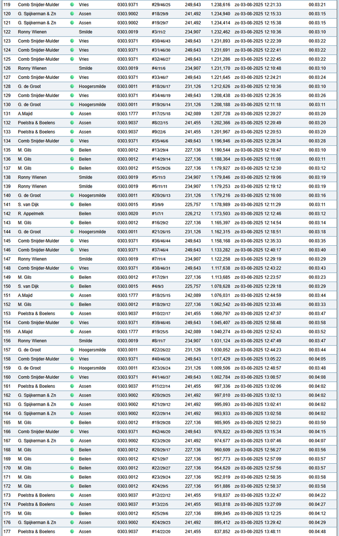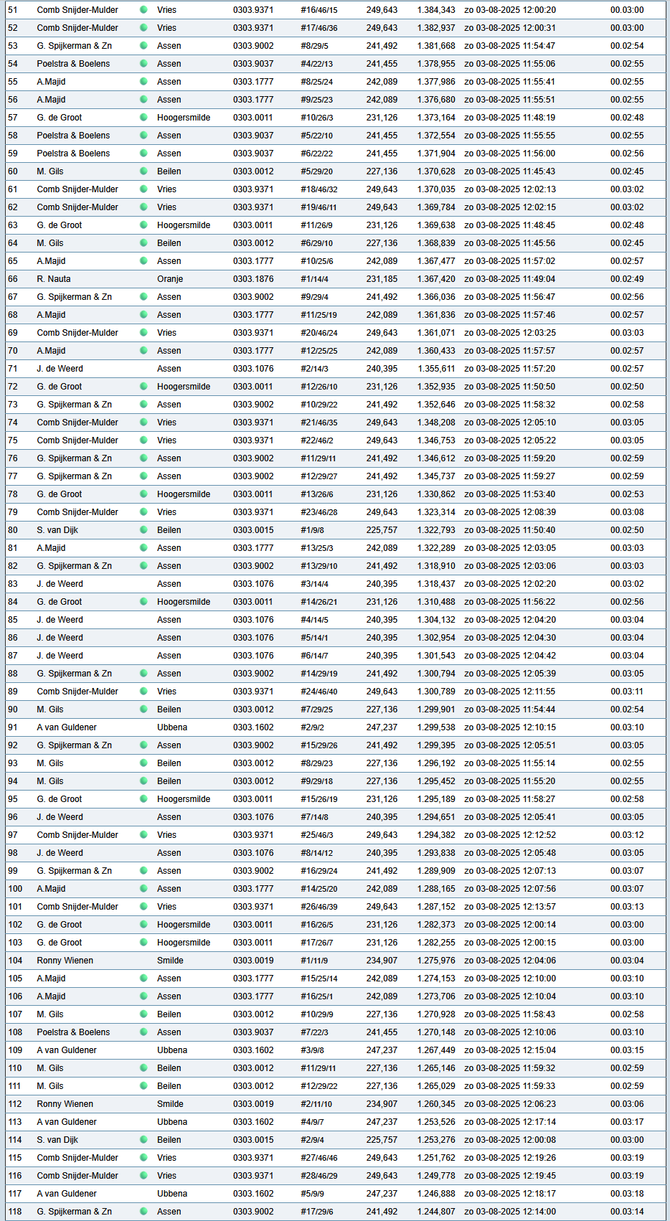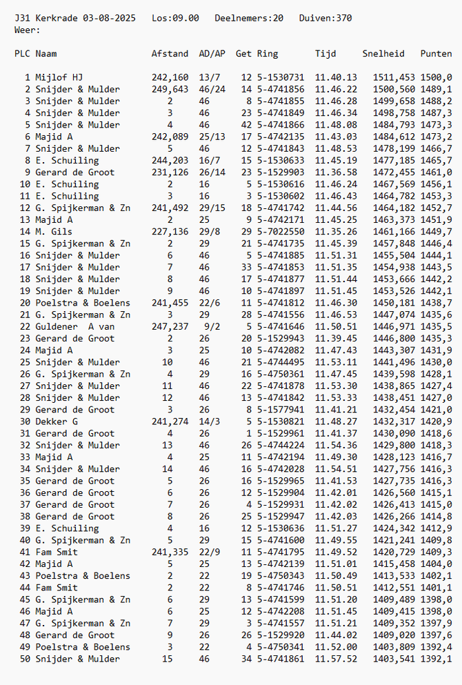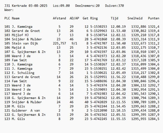 Totaalstaat Deelnemers/Duiven: