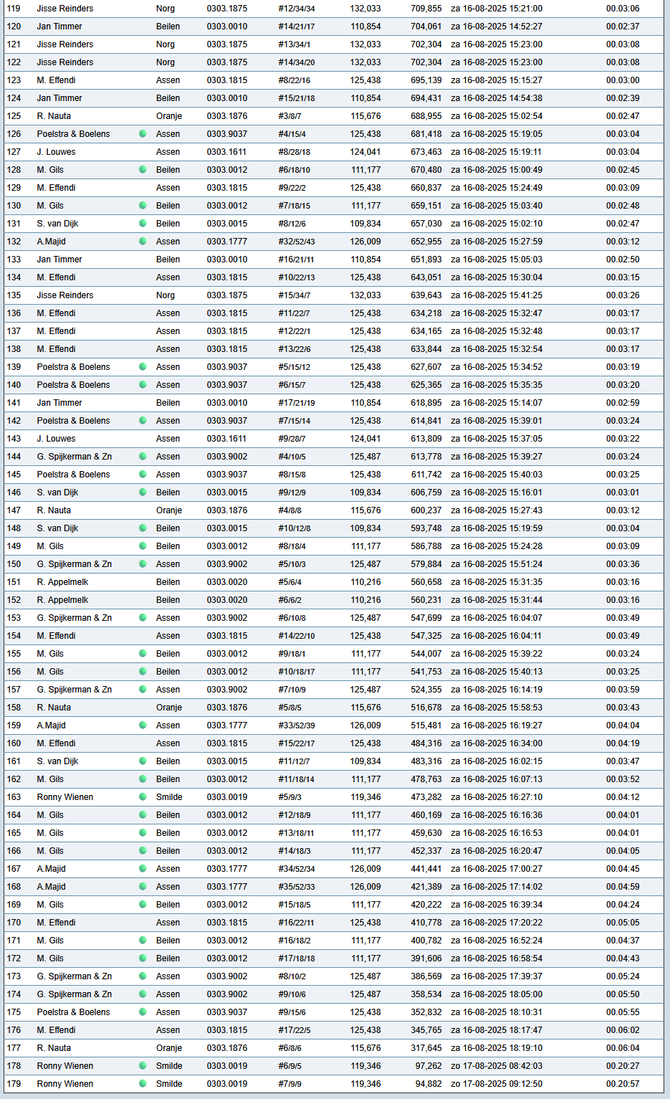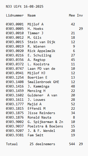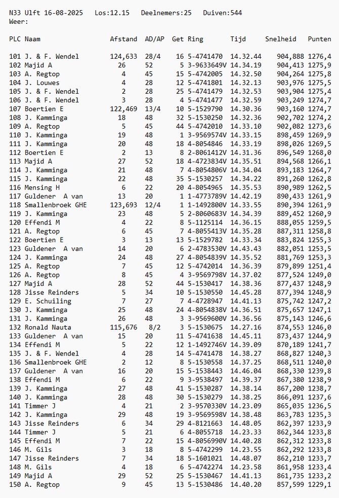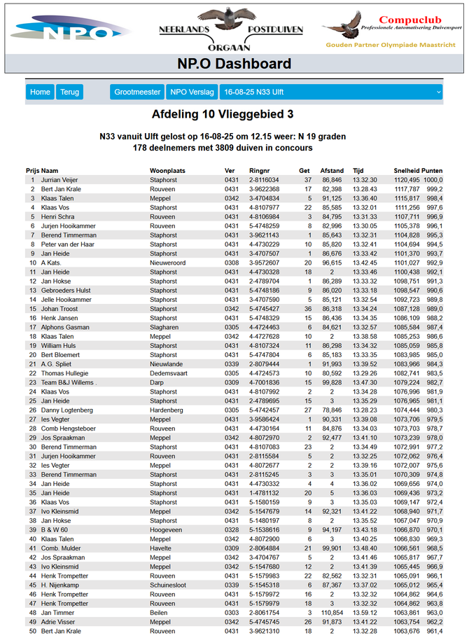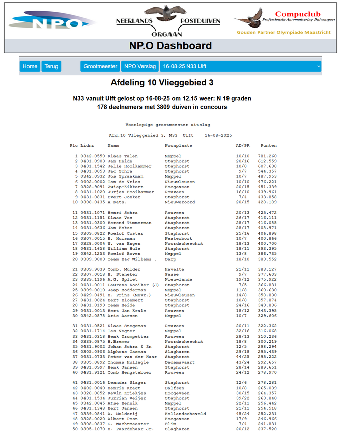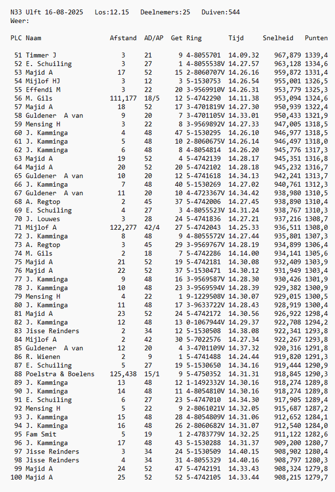 Totaalstaat Deelnemers/Duiven: