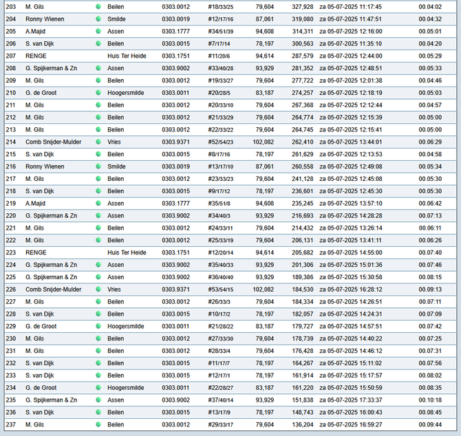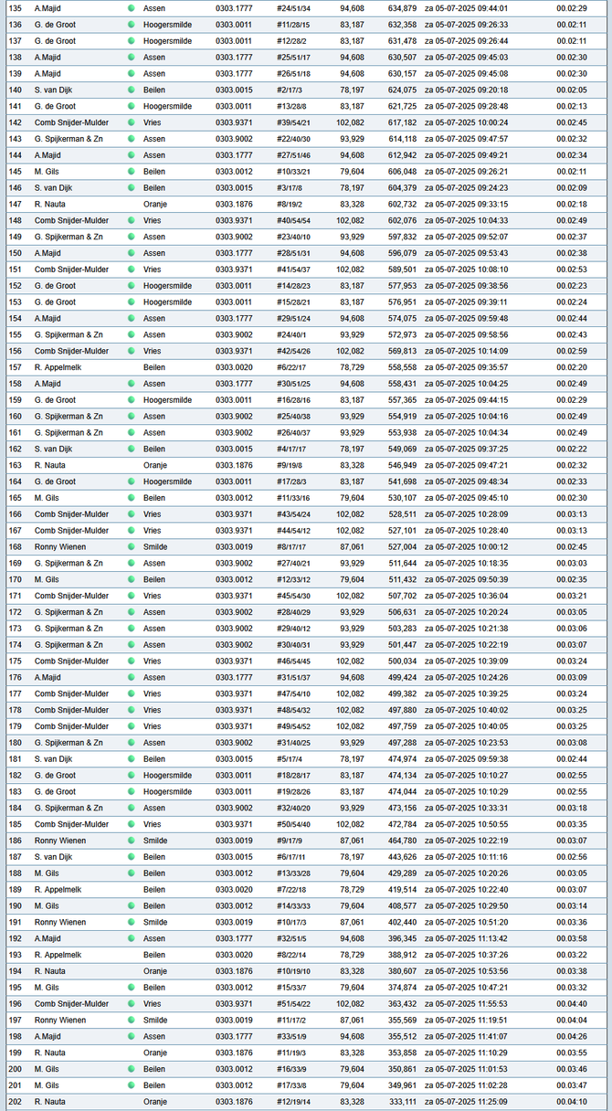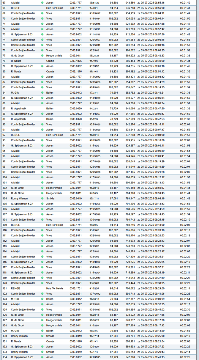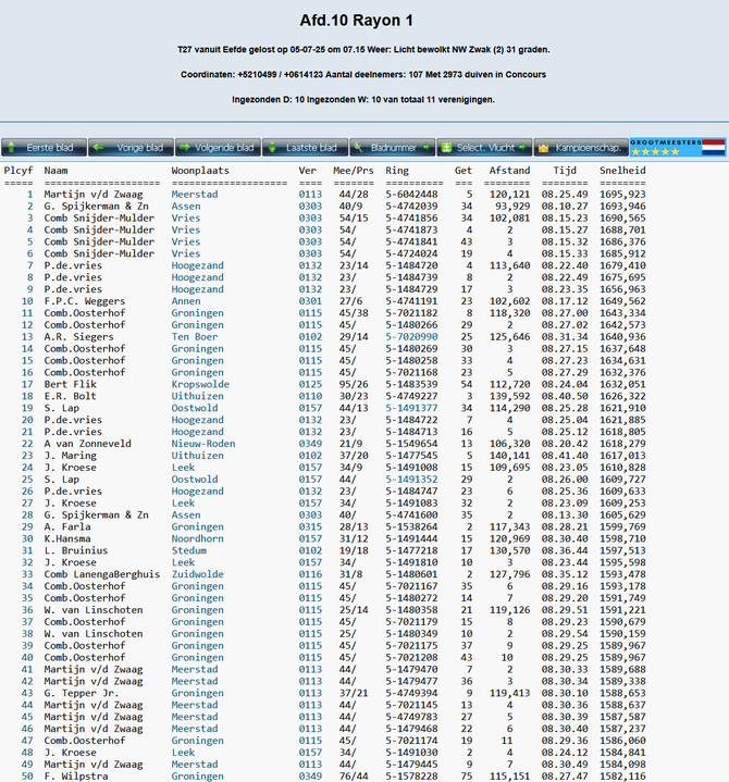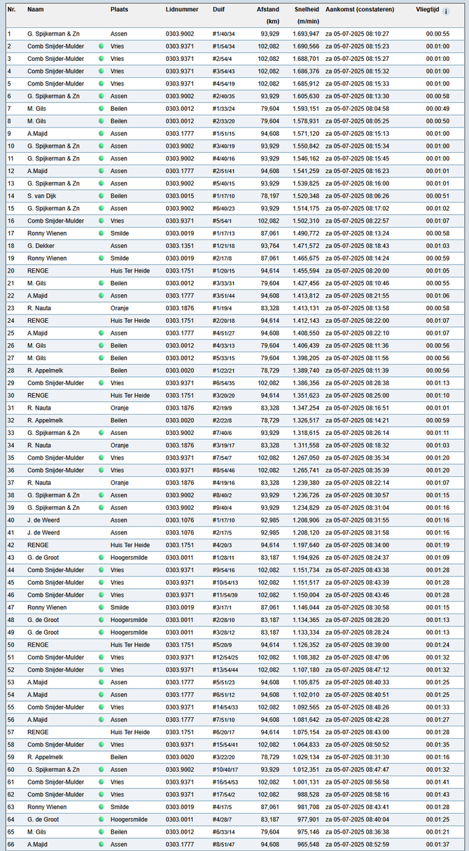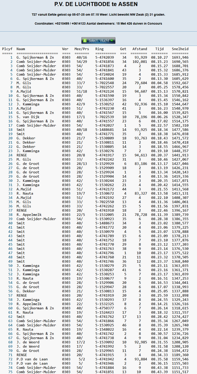 Totaalstaat Deelnemers/Duiven: