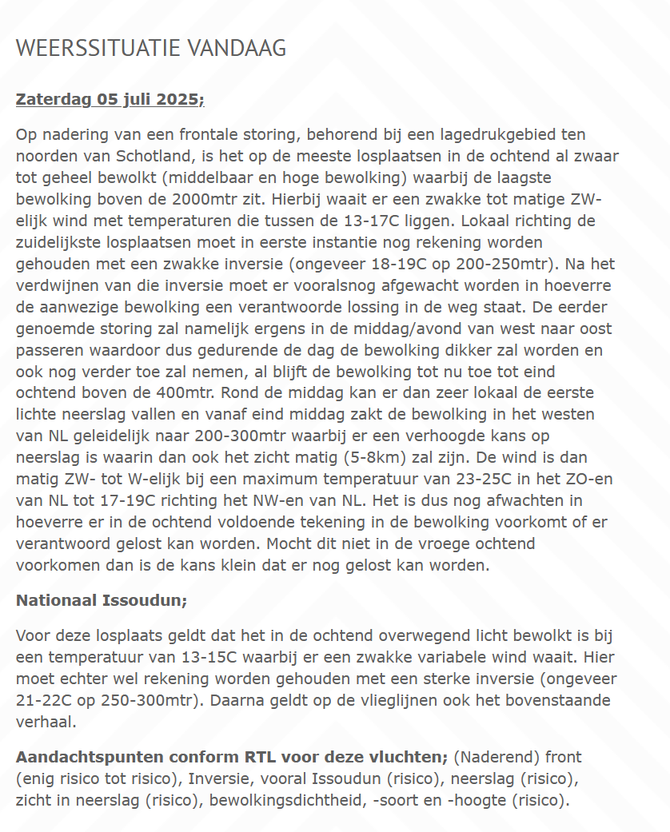 Verloop van de Vlucht: