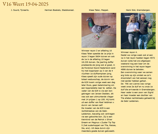 Totaalstaat Deelnemers/Duiven: